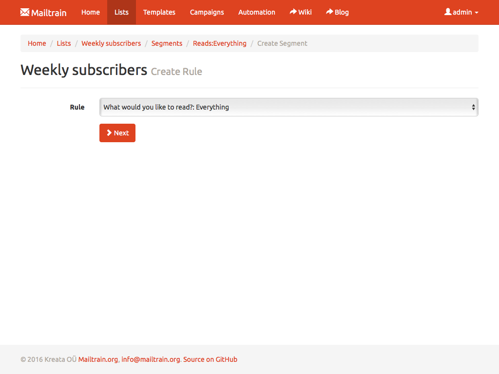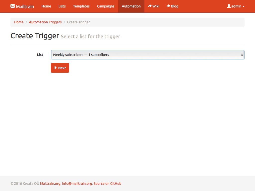 Setup Mailtrain to track RSS feeds and if a new entry is detected in a feed then Mailtrain auto-generates a new campaign using entry data as message contents and sends it to selected subscribers.